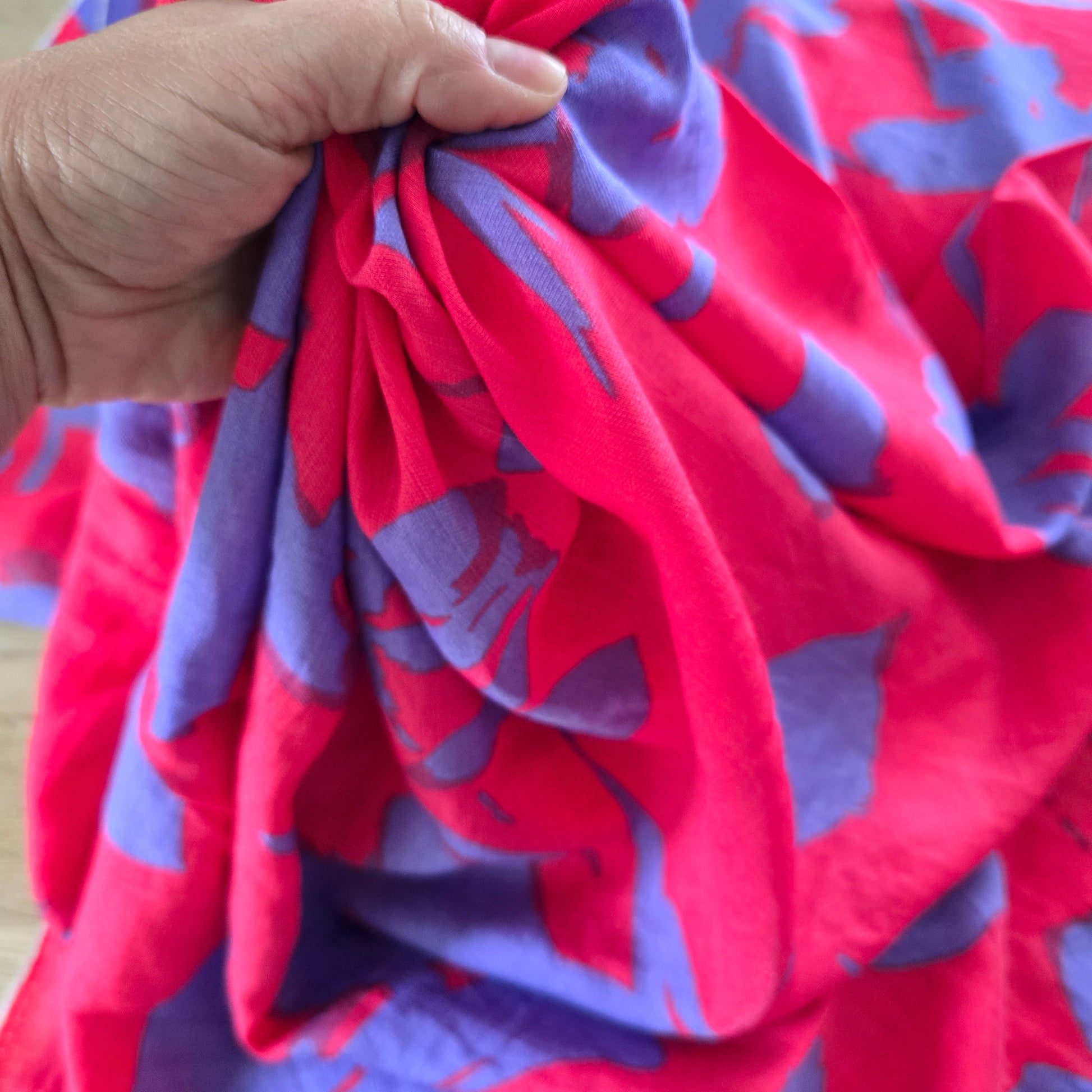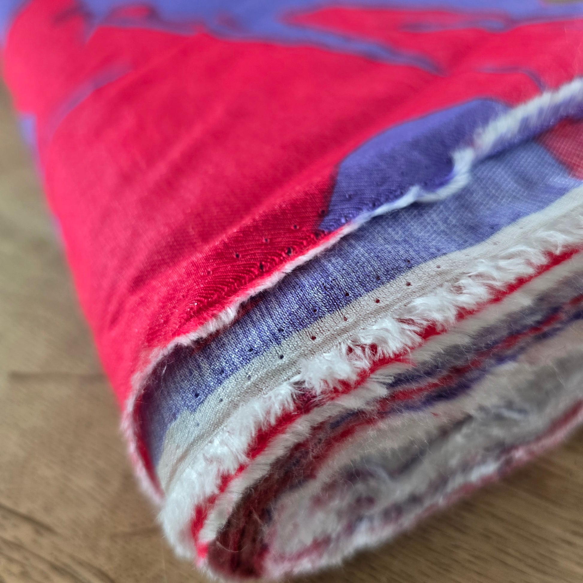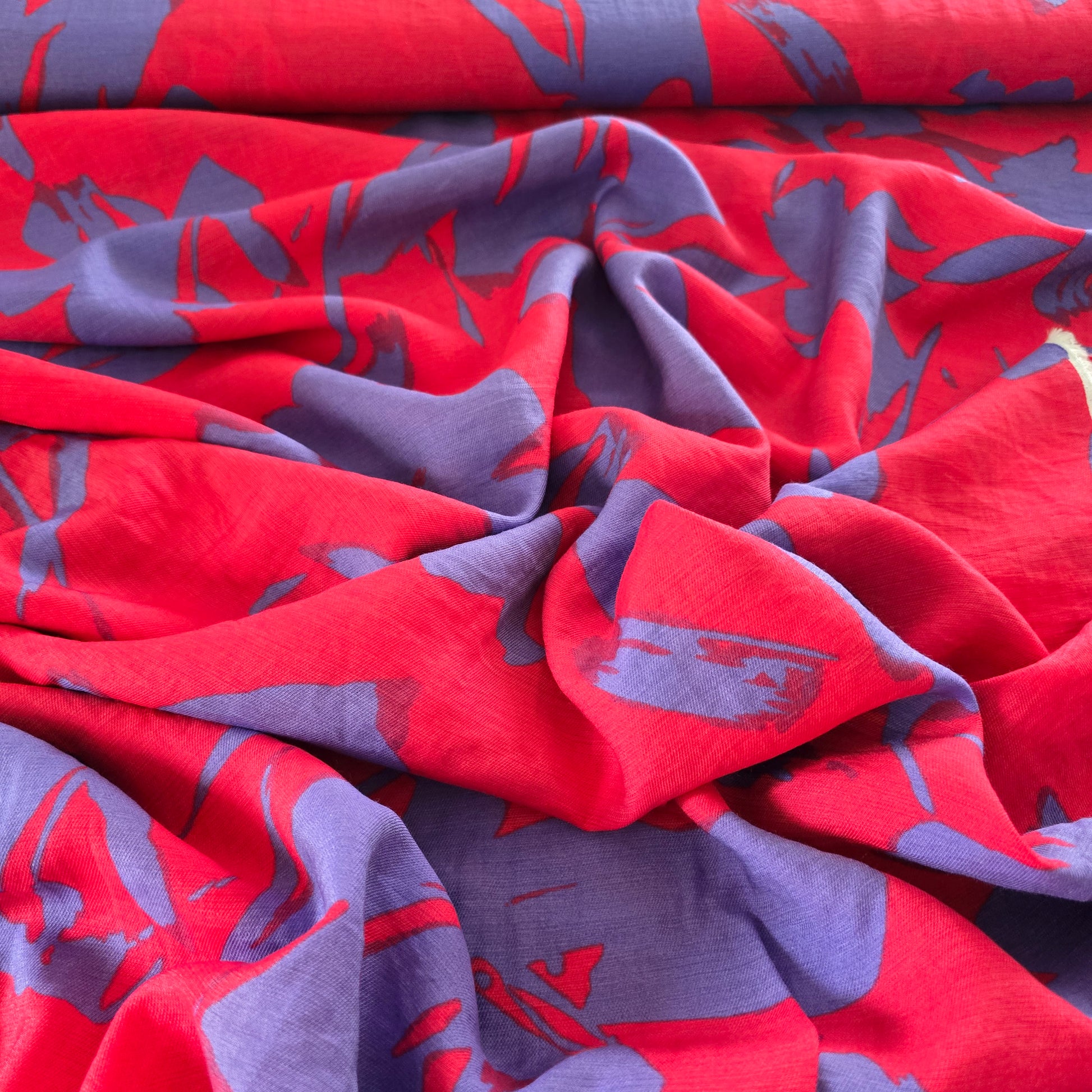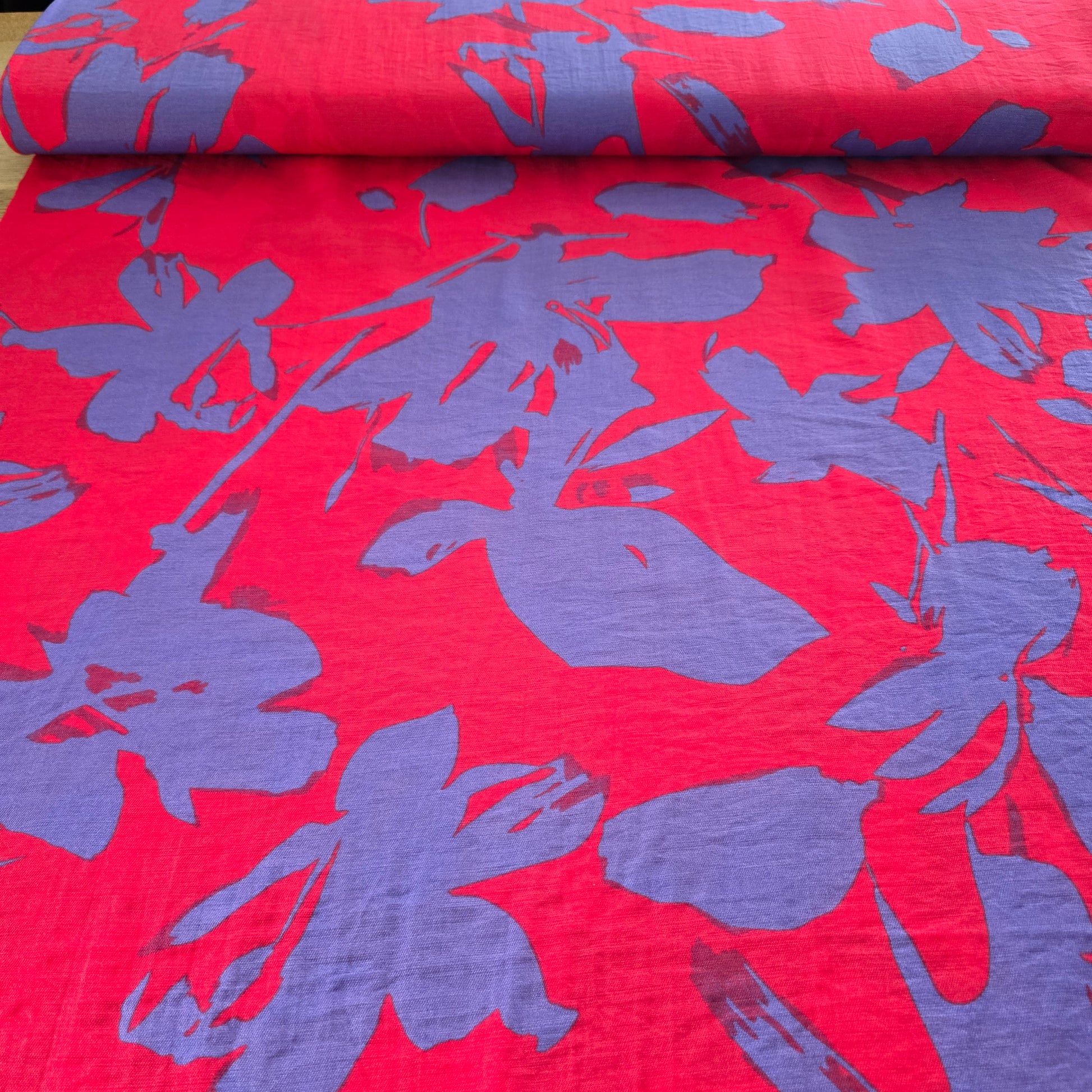 Dieser feine Viskosemix mit Polyamid überzeugt durch seinen fließenden Fall, seine Leichtigkeit und eine wunderschöne, lebendige Farbkombination in kräftigem Himbeerrot und lila. Das Gewebe ist angenehm weich, hauchzart und ideal für sommerliche Kleidungsstücke, die luftig und beweglich bleiben sollen wie fließende Blusen, feminine Kleider, schwingende Röcke oder lässige Tuniken.