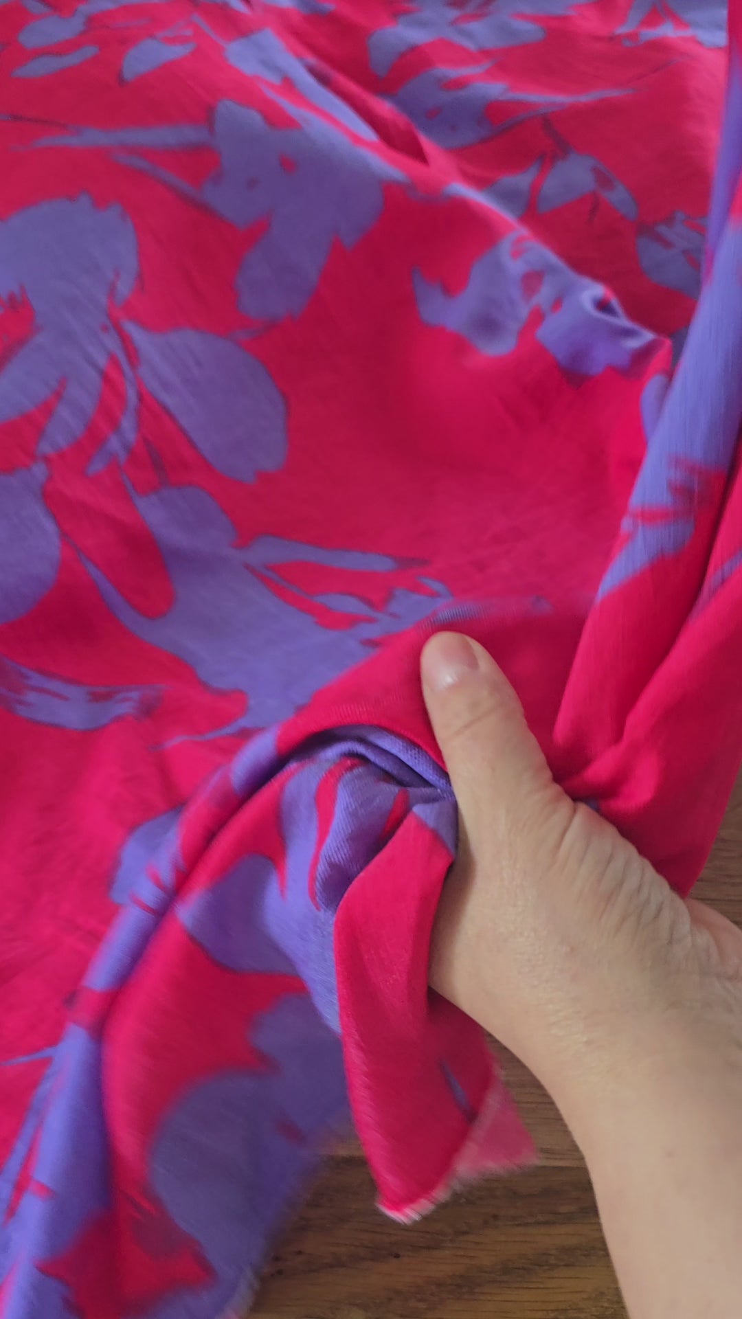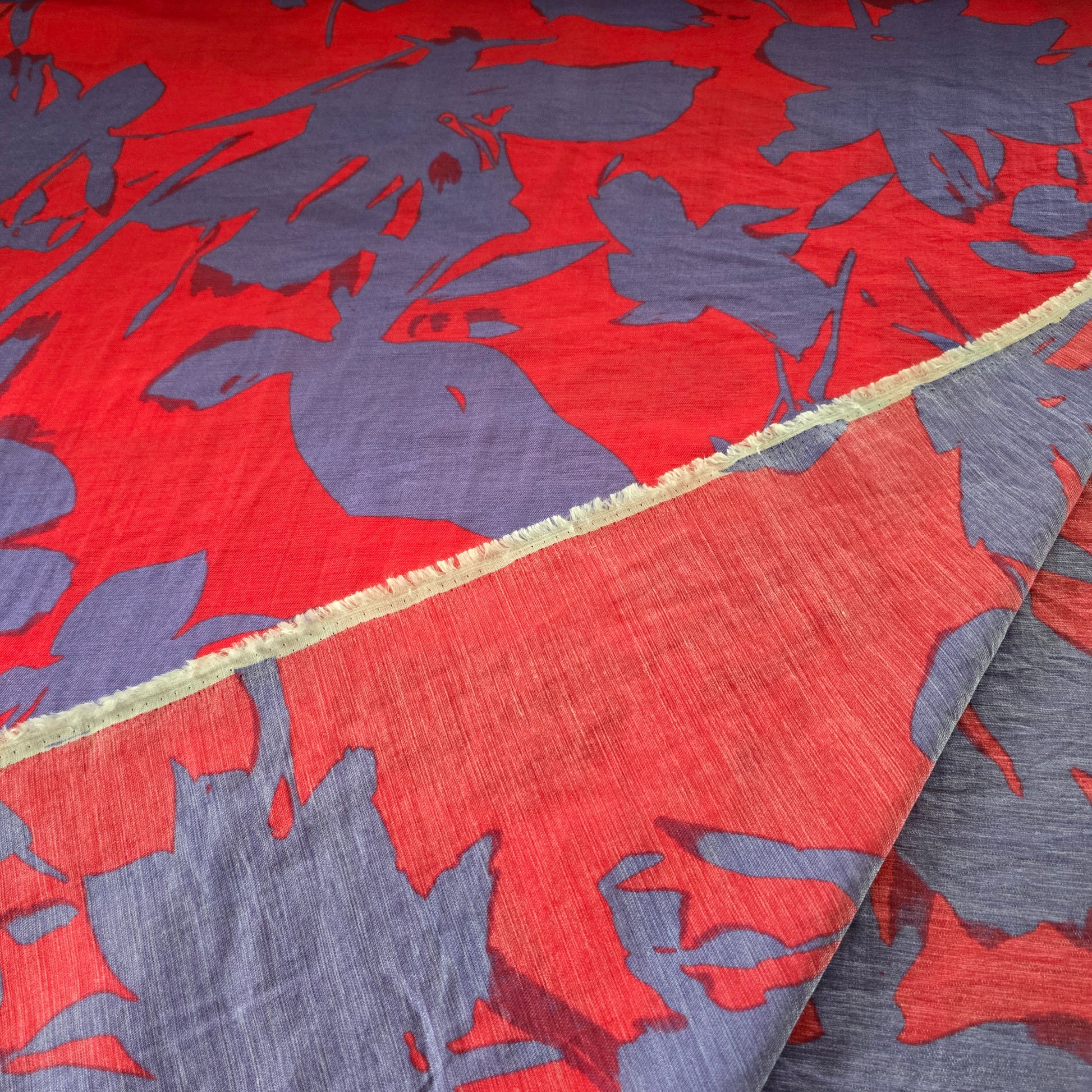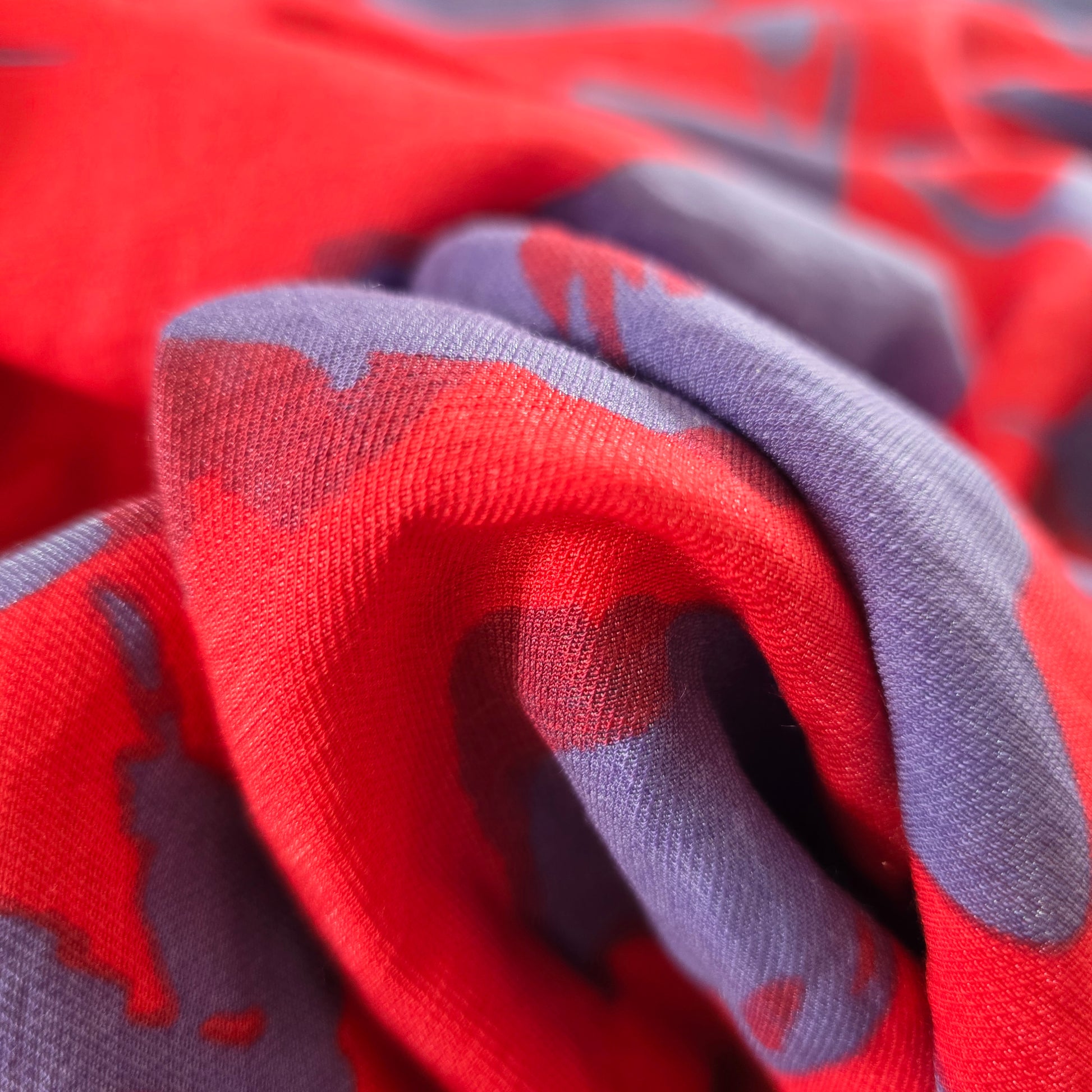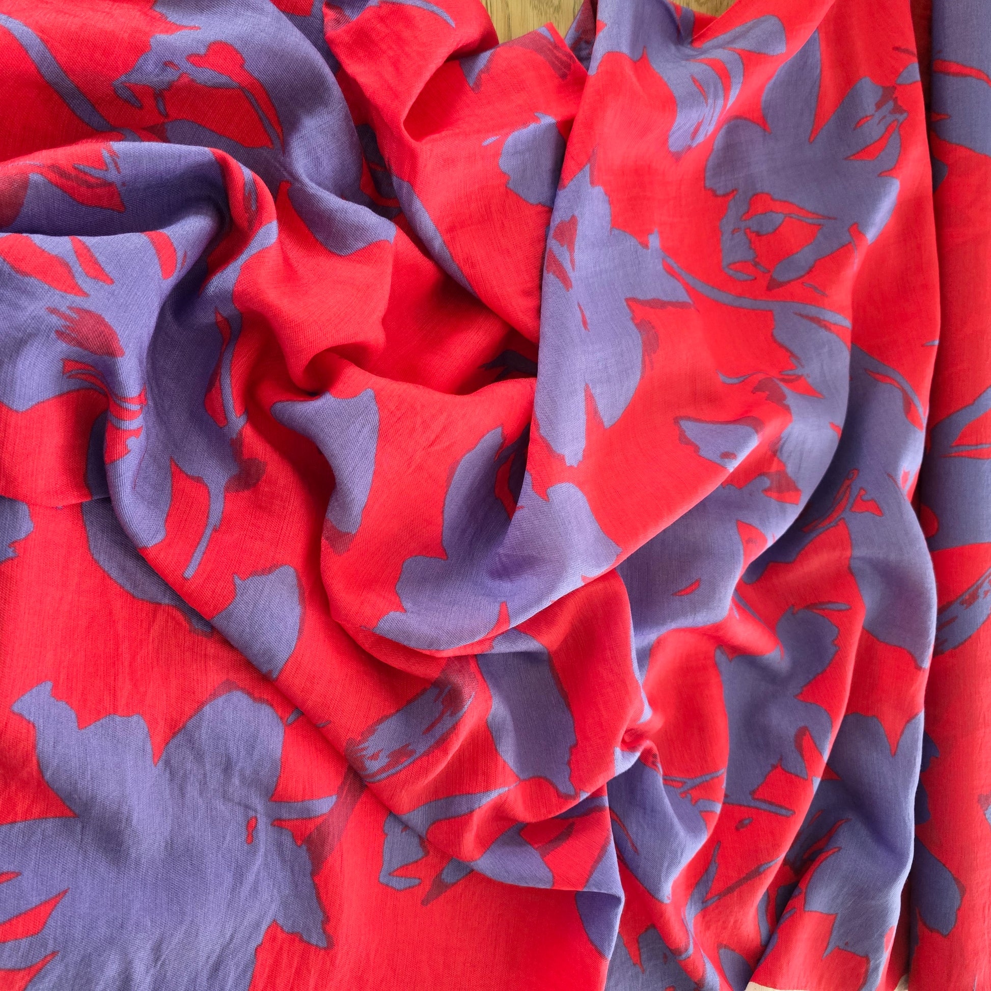 Dieser feine Viskosemix mit Polyamid überzeugt durch seinen fließenden Fall, seine Leichtigkeit und eine wunderschöne, lebendige Farbkombination in kräftigem Himbeerrot und lila. Das Gewebe ist angenehm weich, hauchzart und ideal für sommerliche Kleidungsstücke, die luftig und beweglich bleiben sollen wie fließende Blusen, feminine Kleider, schwingende Röcke oder lässige Tuniken.