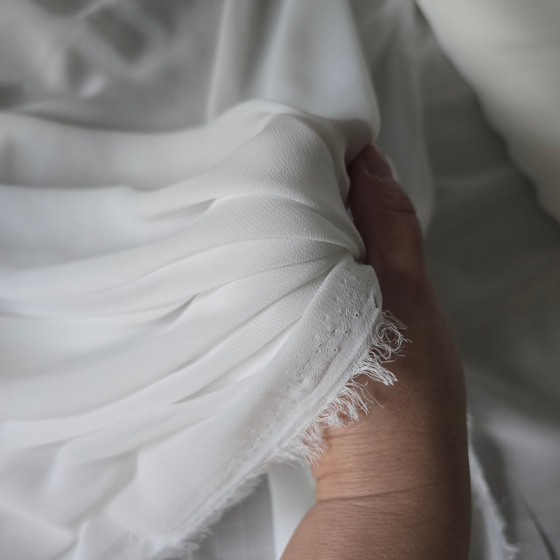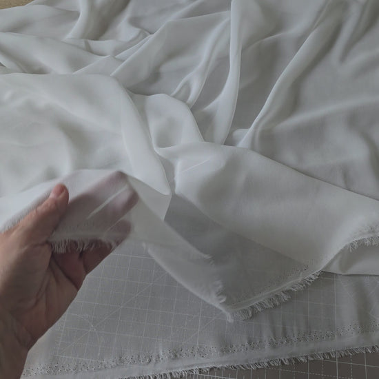 Unser exklusiver Braut-Chiffon überzeugt durch seine besonders feine, halbtransparente Optik und die leicht sandige Oberfläche, die ihm eine dezente, matte Eleganz verleiht. Der Stoff fällt schwer und fließend, schwingt bei jeder Bewegung und sorgt für einen traumhaft eleganten Look. Ideal geeignet für fließende Brautkleider, Abendmode, Röcke und Tücher. Perfekt, wenn ein edler, weich fallender Stoff mit etwas Gewicht gesucht wird, der dennoch zart und feminin wirkt.
