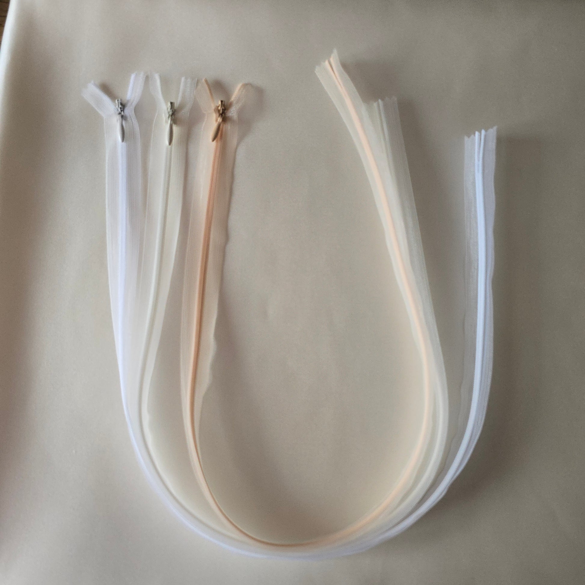Dieser nahtverdeckte Reißverschluss eignet sich perfekt für alle Art von Brautkleider, festliche Röcke oder elegante Oberteile. Dank seines feinen Trägermaterials und der speziellen Verzahnung fügt er sich nahezu unsichtbar in die Naht ein und sorgt für eine besonders saubere Optik. Leichtgängig und stabil – ideal für feine Stoffe, Tülleinsätze und Spitze.