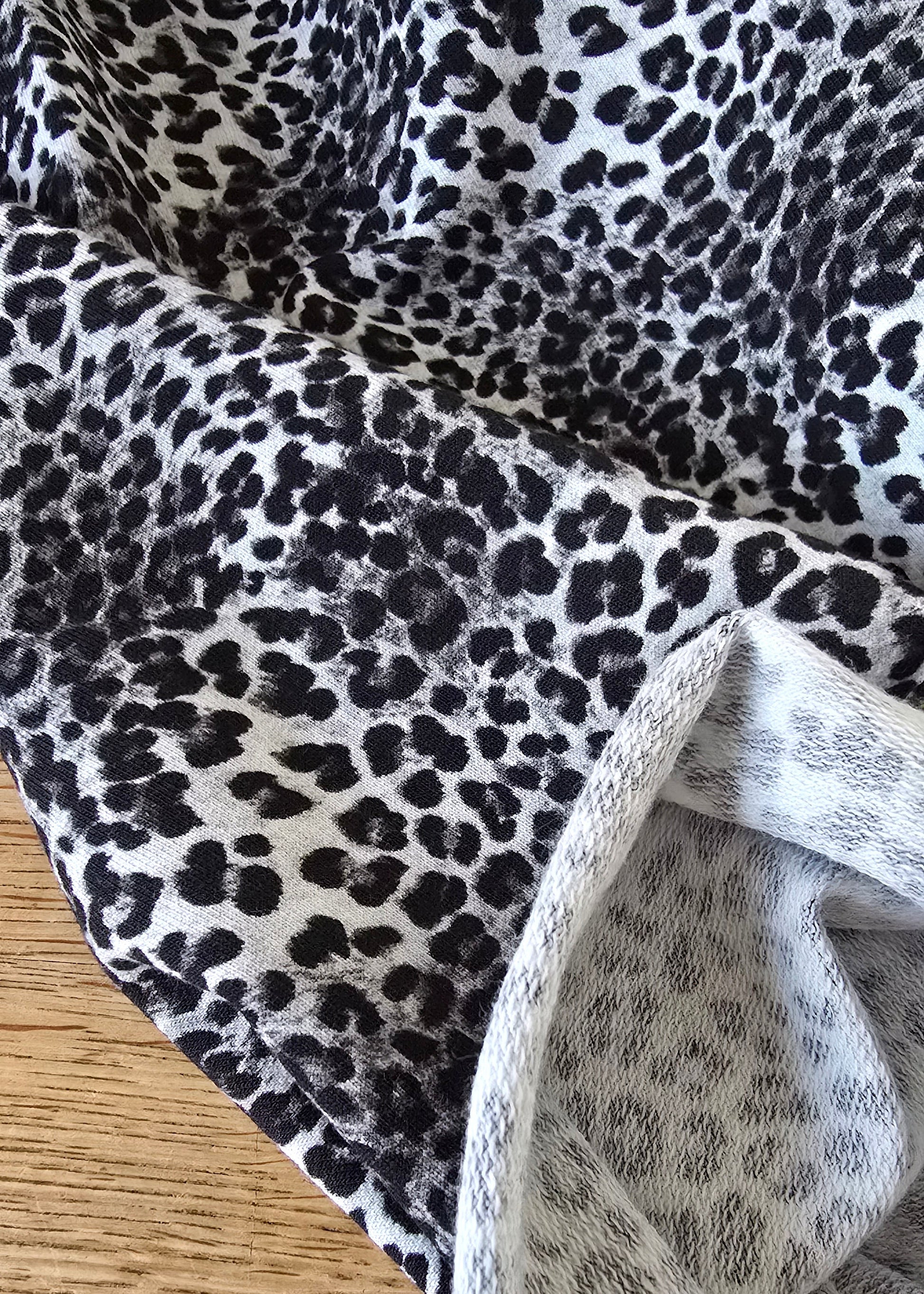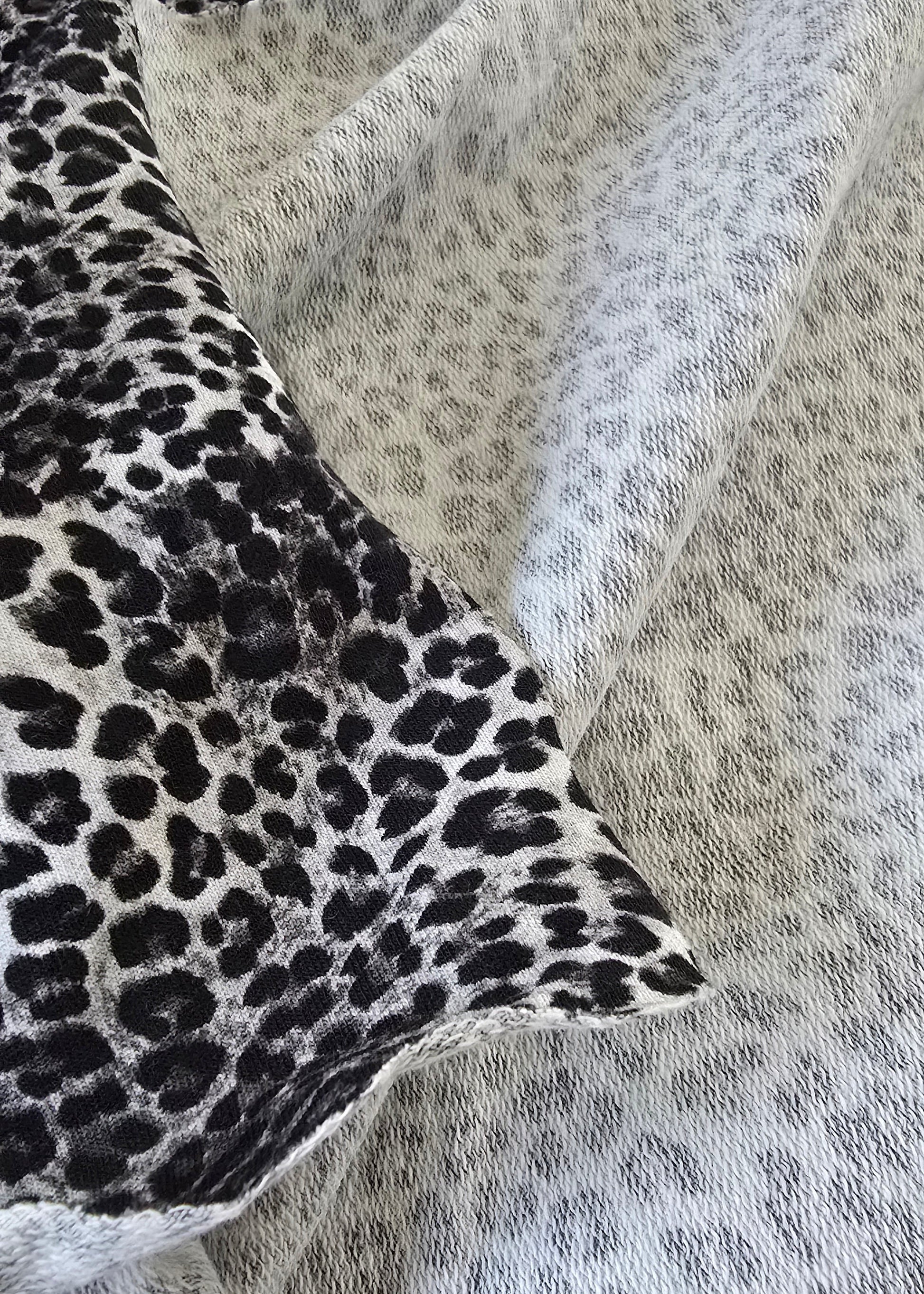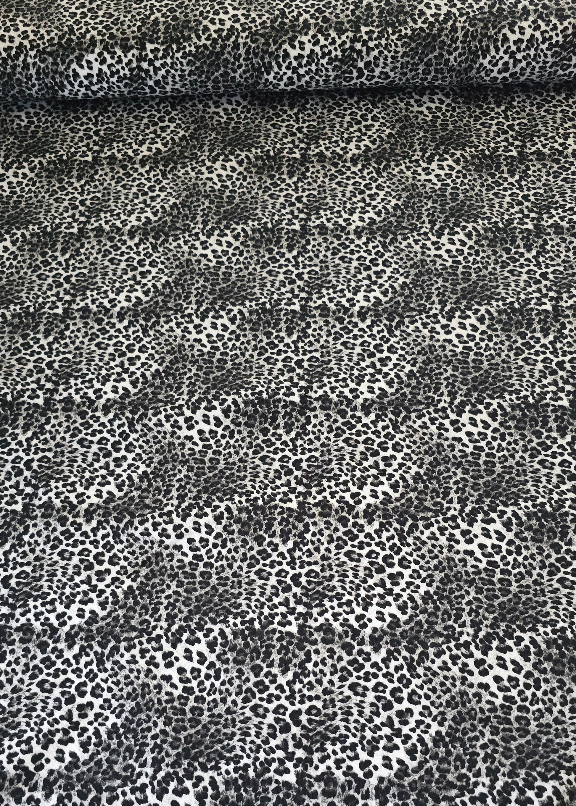Sommersweat French Terry, weich und angenehm auf der Haut, bedruckt in einem coolen schwarz-weiß Leo-Muster. Der Stoff ist ideal für Sweatshirts, Hoodies, leichte Jacken oder lässige Freizeitkleidung und verleiht jedem Kleidungsstück einen modernen, stylischen Look. Durch den Elasthan-Anteil ist er leicht dehnbar und behält trotzdem seine Form.